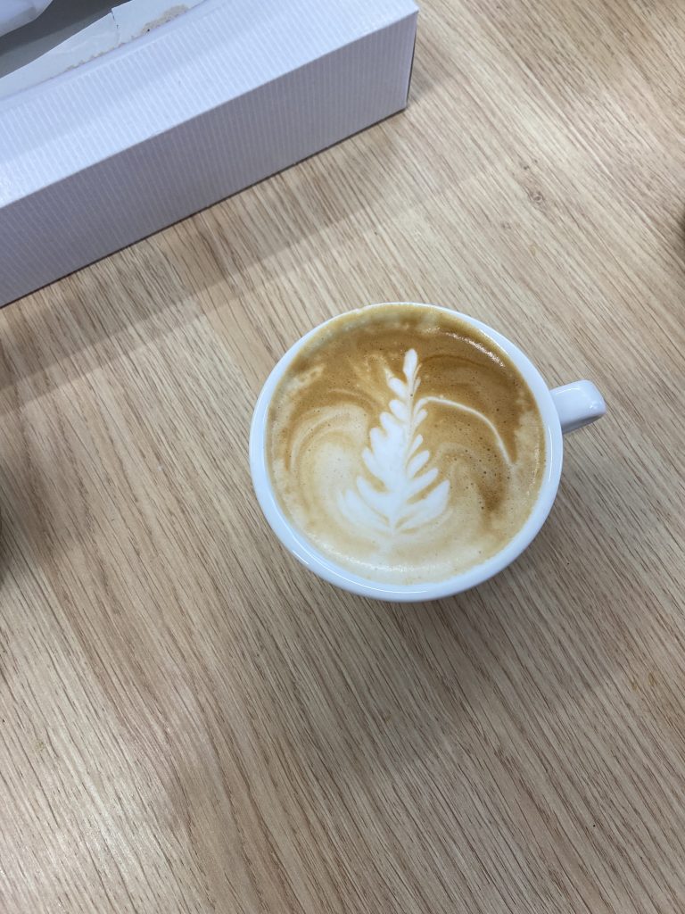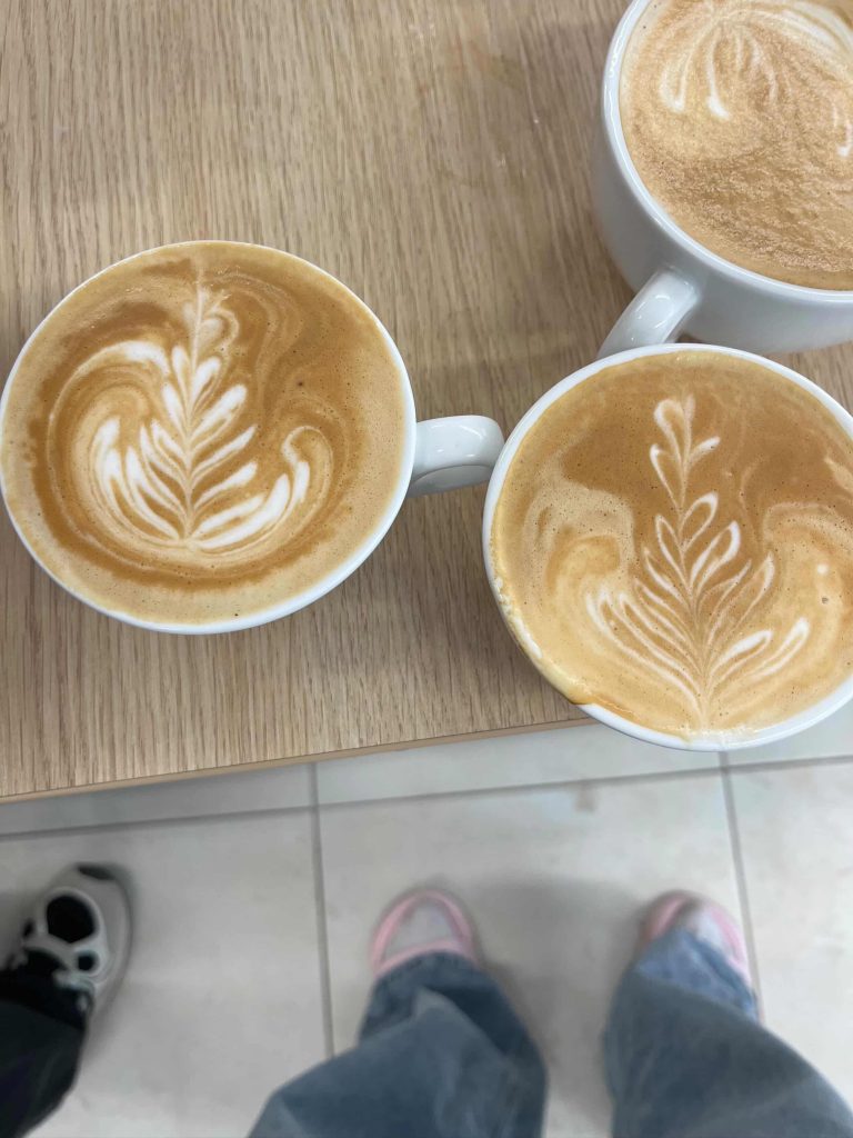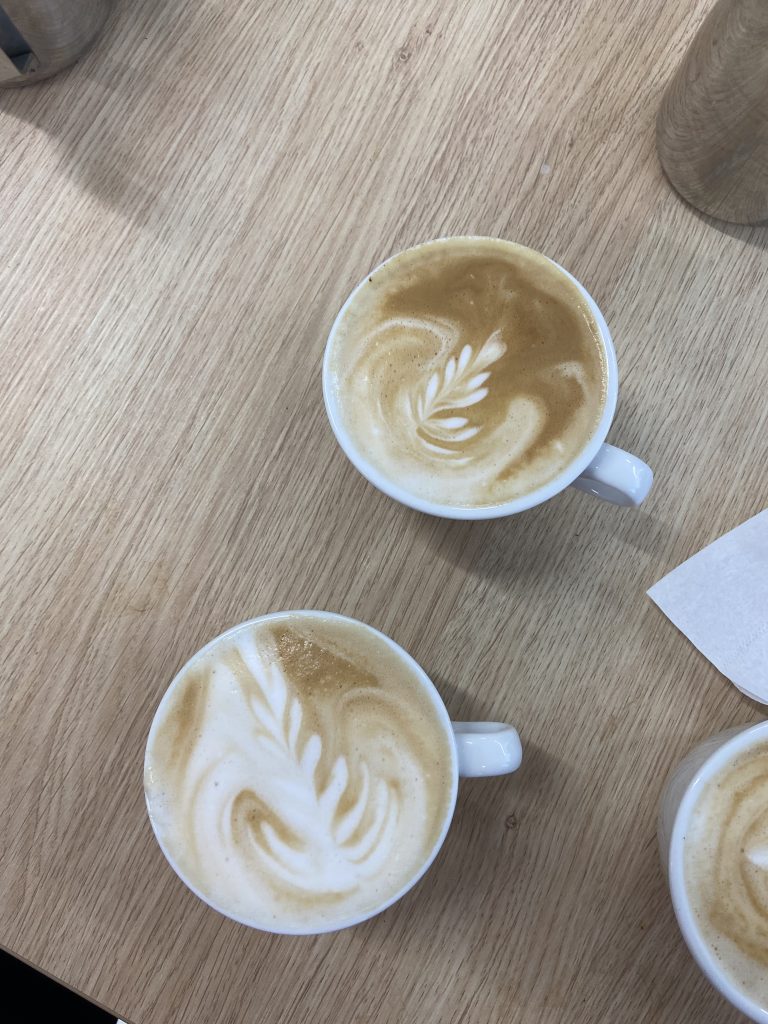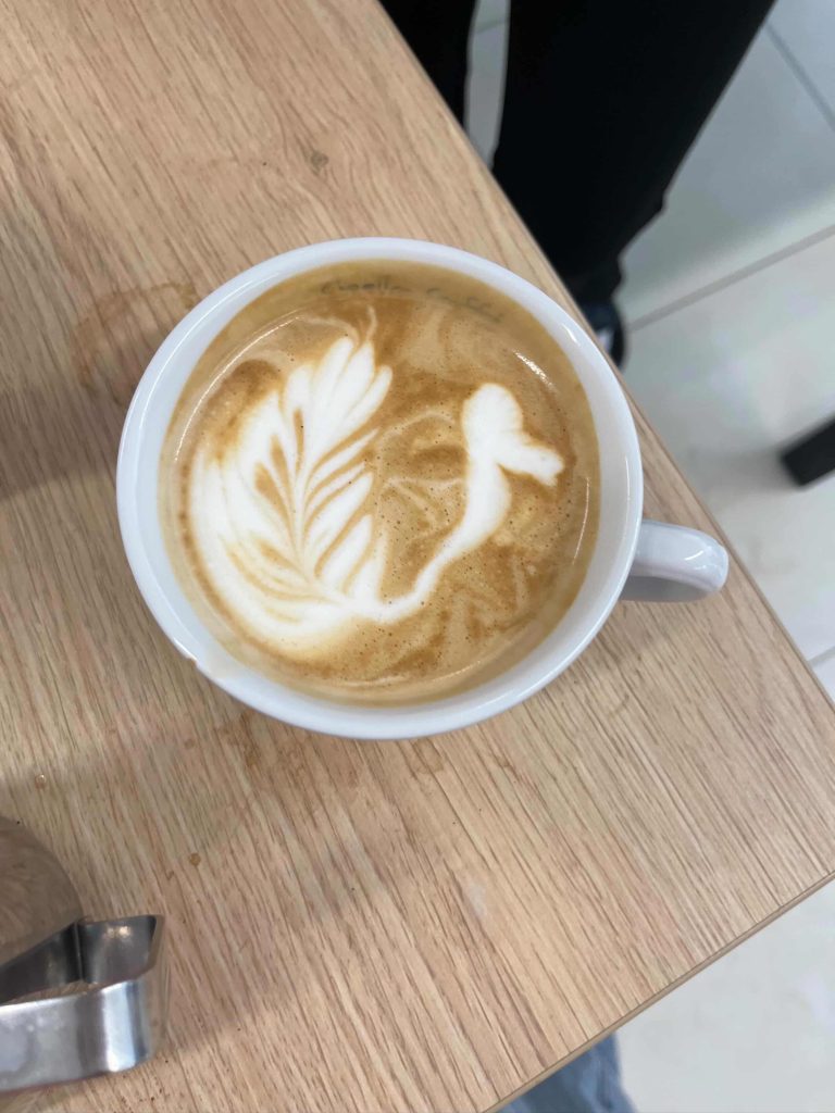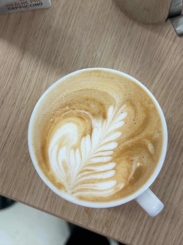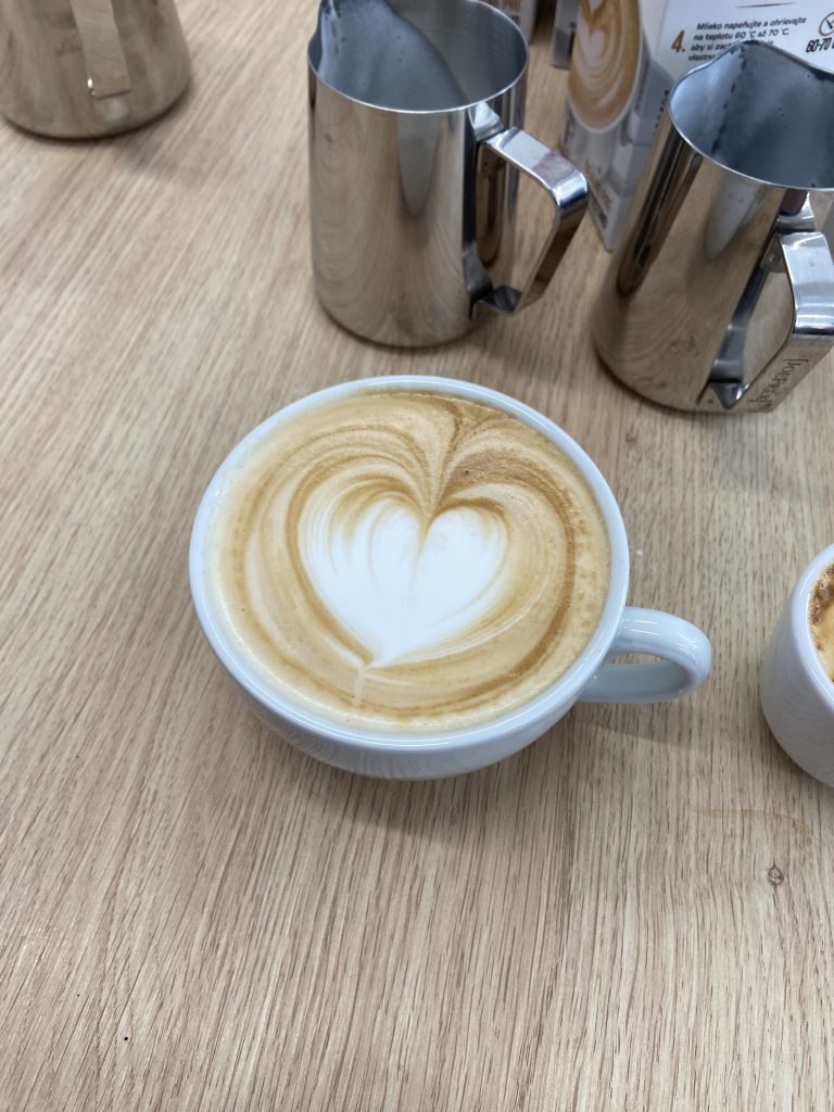 Tretí, posledný deň, bol najzaujímavejší ⭐. Po napísaní testov, ktoré sme všetci úspešne zvládli ✔️, sme sa učili kresliť do kávy tzv. latte art. Naučili sme sa, že kávu môžeme použiť ako maliarske plátno 🎨. Vďaka tomuto kurzu už vieme nakresliť pekné srdiečko ❤️, ale aj komplikovanú labuť.